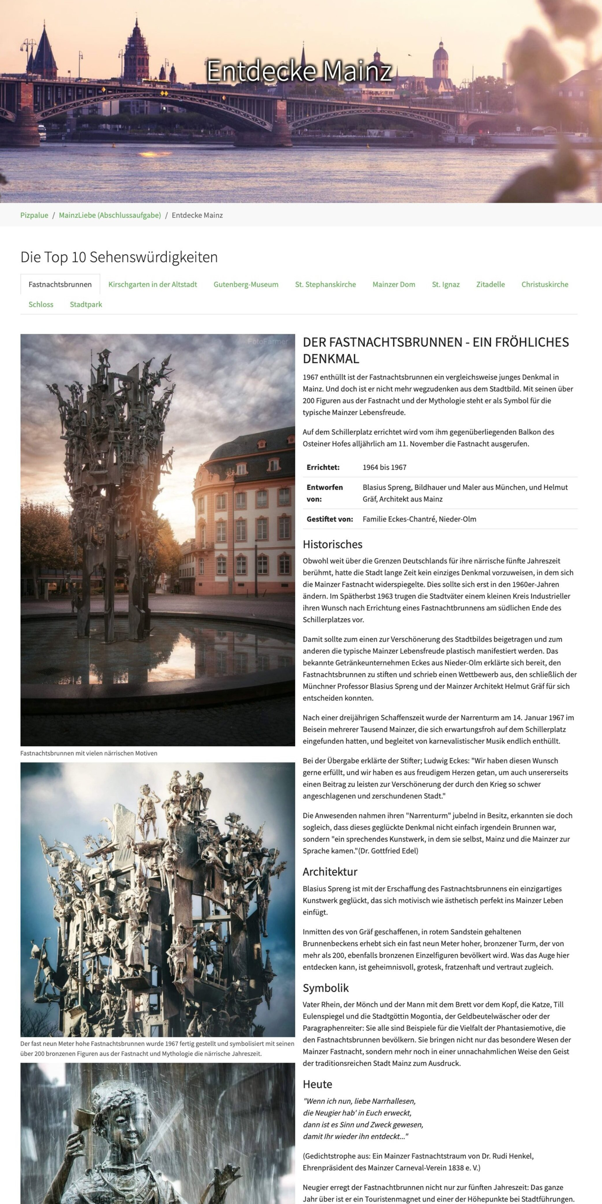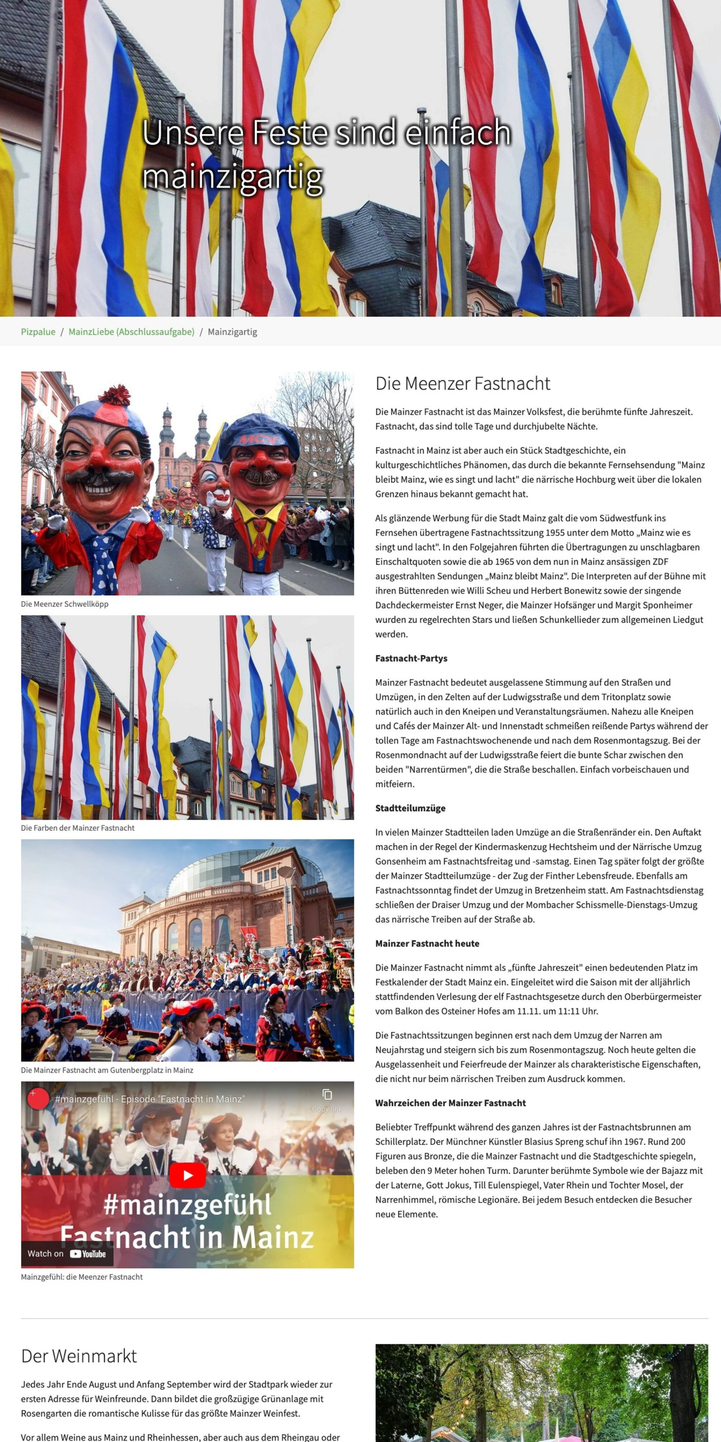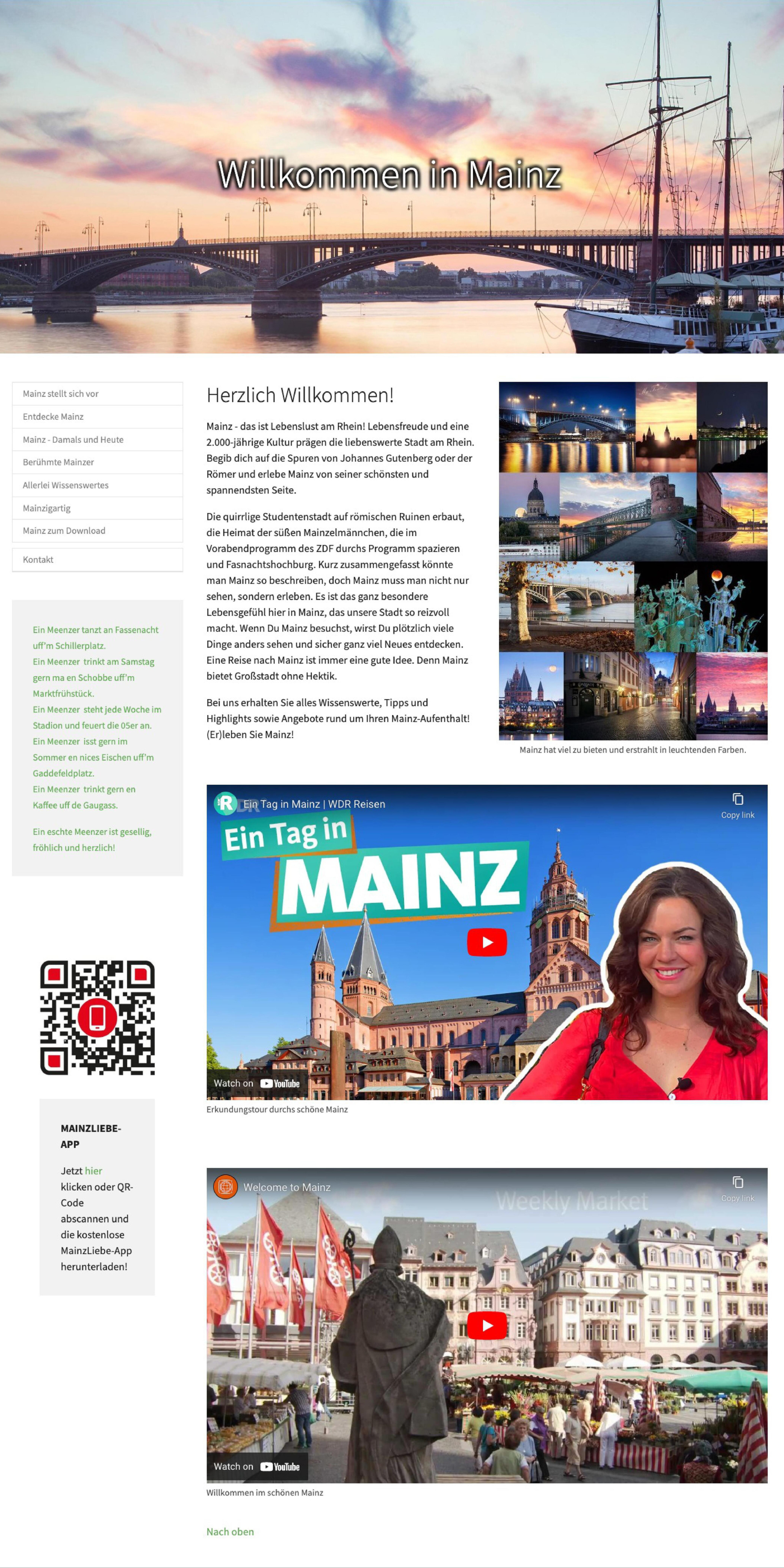 Mit Typo3 habe ich die Webseite MainzLiebe entwickelt – eine Plattform rund um meine Heimatstadt Mainz. Sie bot Wissenswertes, zahlreiche Sehenswürdigkeiten und kulturelle Highlights, präsentiert in einem klaren, modernen Layout. Die Umsetzung erfolgte vollständig von mir, inklusive Konzeption, Design und Contentpflege.